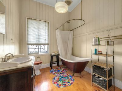 - Large family bathroom with claw-foot bathtub