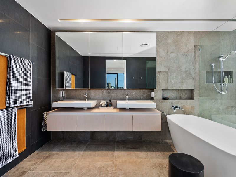 * Decadent master retreat complete with custom built walk-in wardrobe and ensuite finishe with dual vanities, freestanding bathtub and dual his/her waterfall shower heads