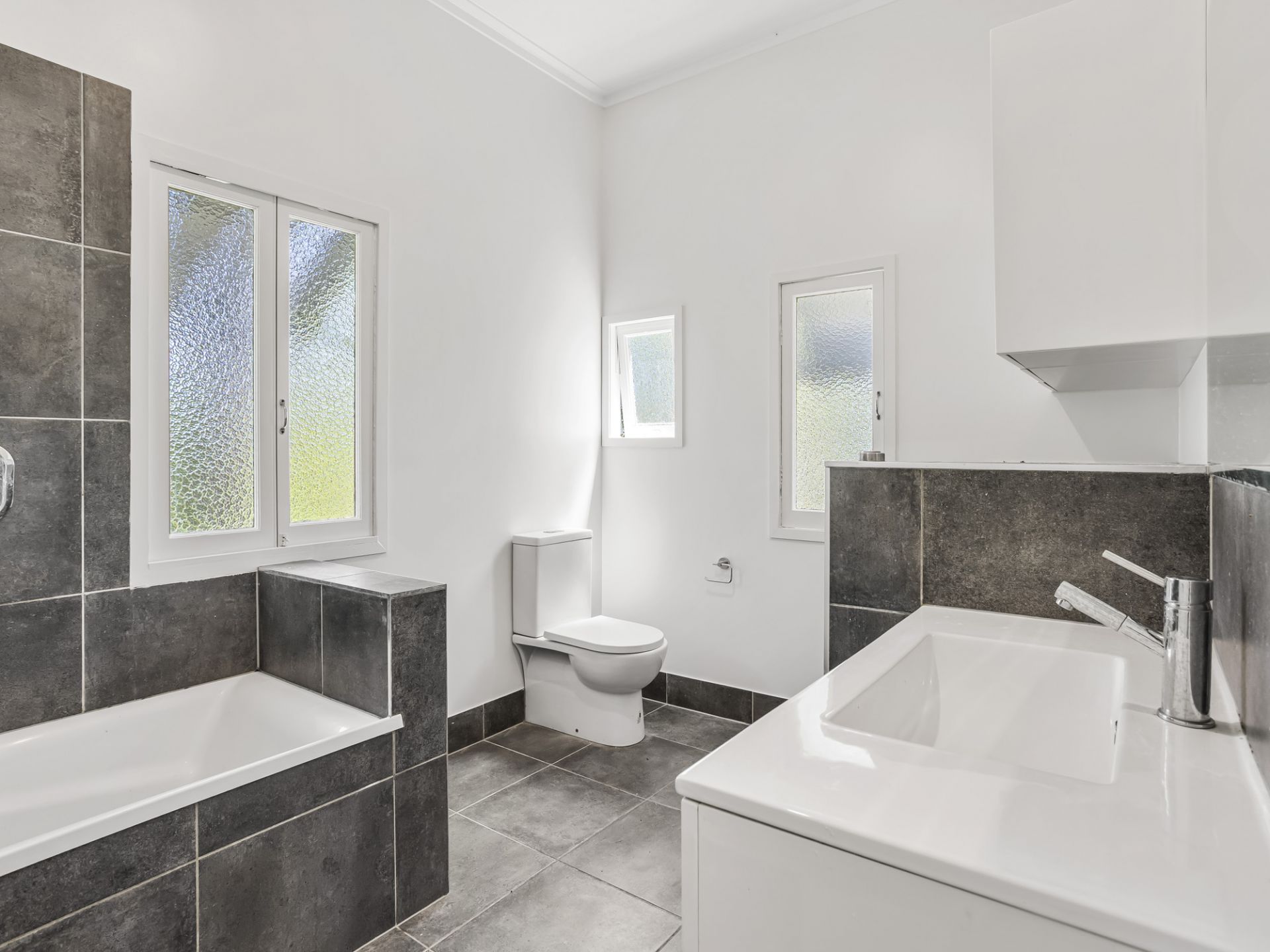 • Functional bathroom with bathtub