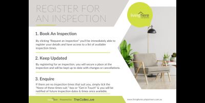 To book a time to inspect, simply click on the 'Book an Inspection Time' button. By registering, you'll be instantly informed of any updates, changes, or cancellations for your appointment.