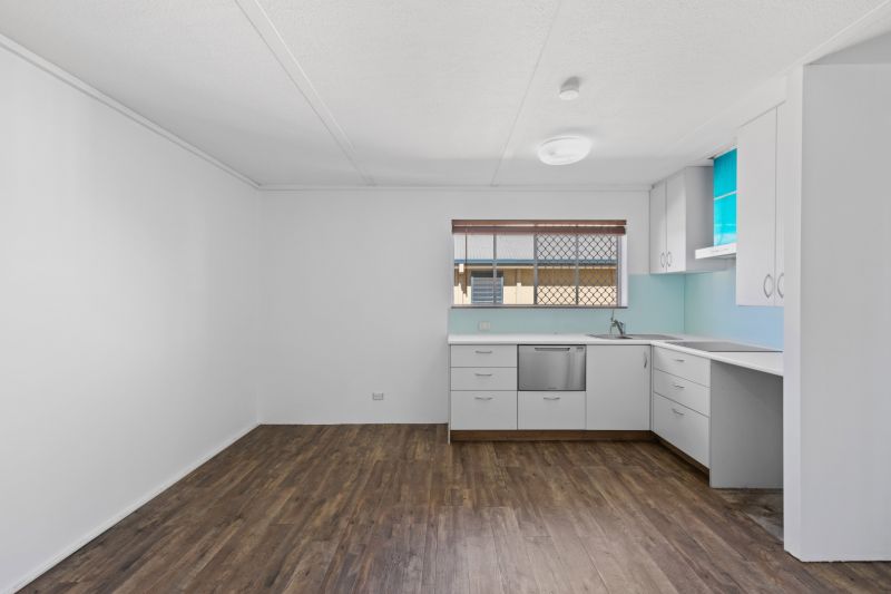 The spacious kitchen provides ample bench and cupboard space, while the large bedroom includes built-in wardrobes and easy access to the ensuite-style bathroom with full-sized bathtub and laundry connections.