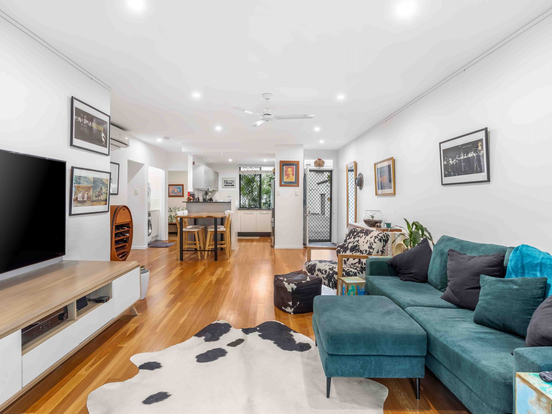 - Spacious open-plan living and dining areas with timber flooring