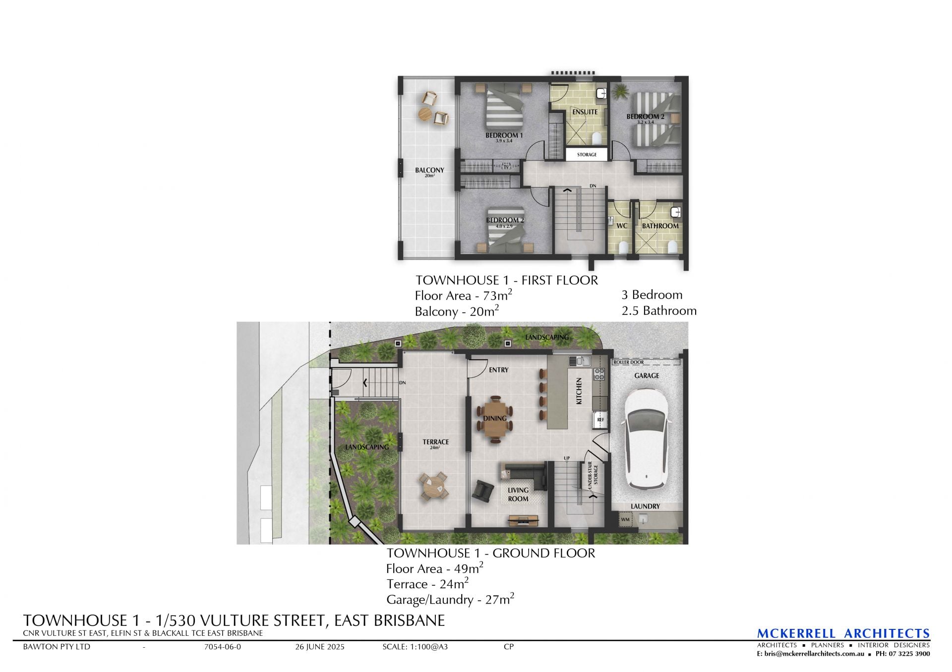 Townhouse 1 is available and features 3 bedrooms, 2 bathrooms, 2 car spaces, and a dual-level layout.