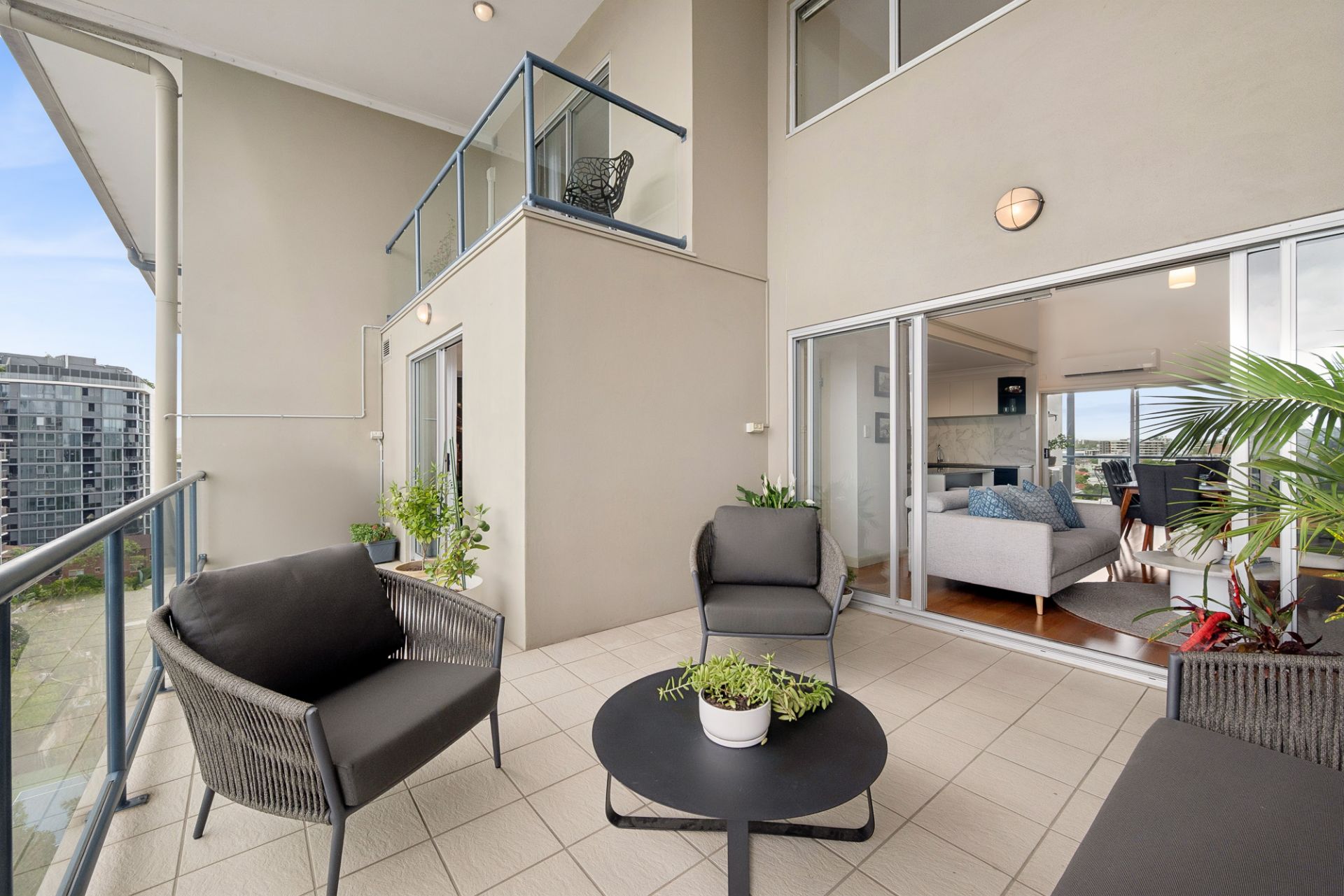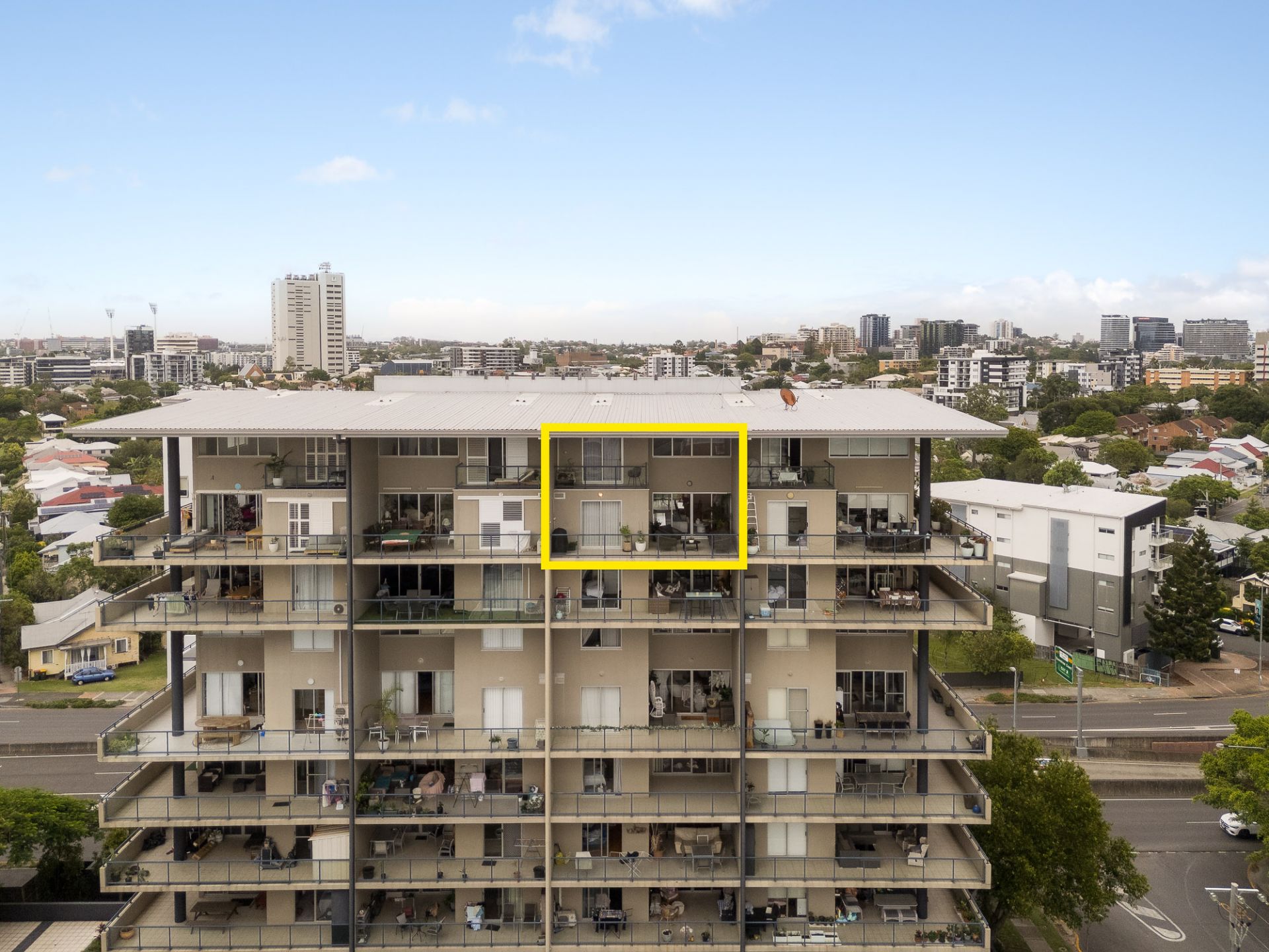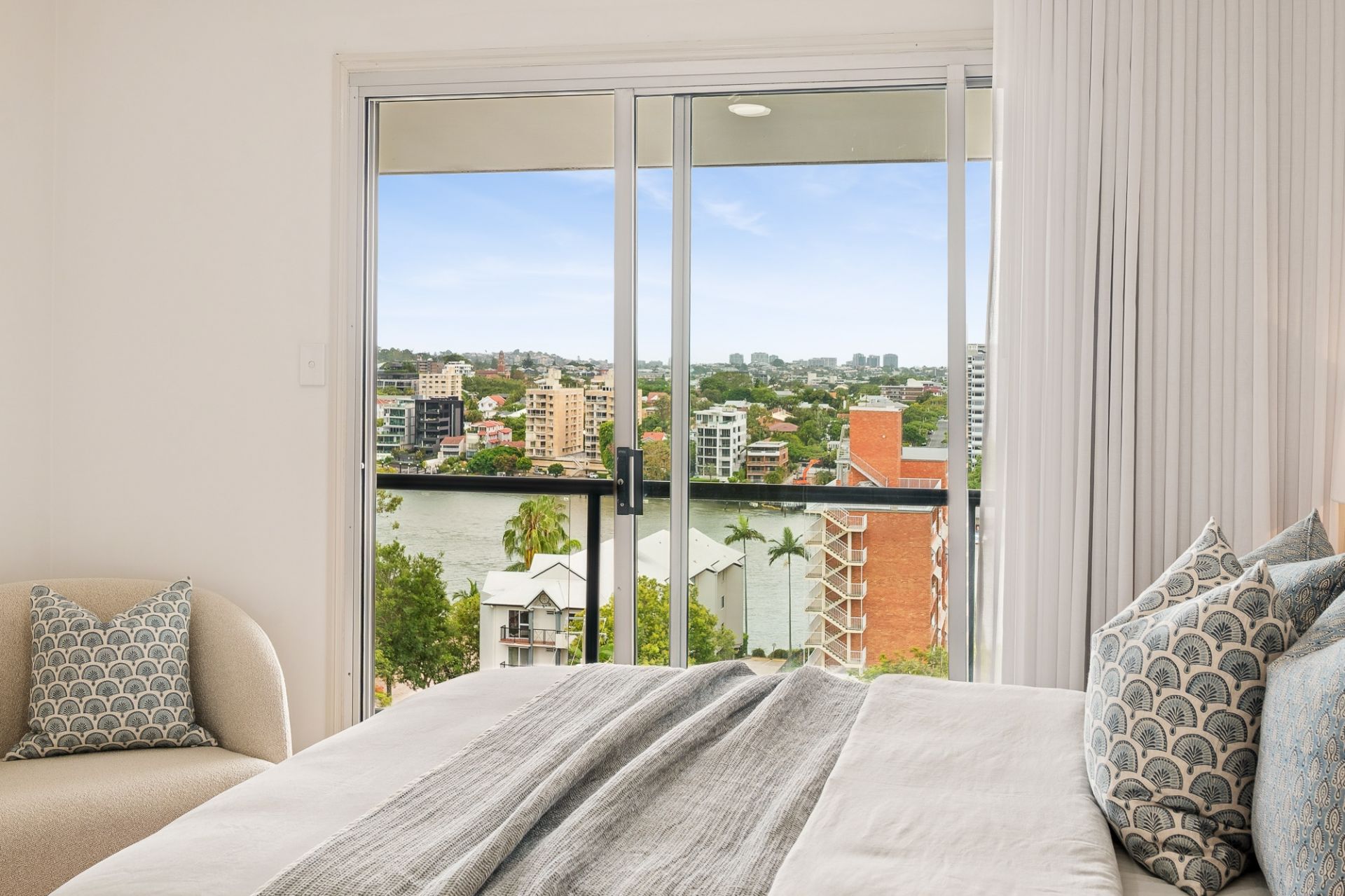 - Three balconies with river, city and Gabba views