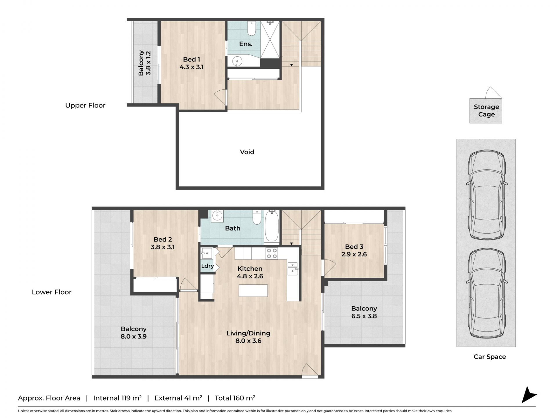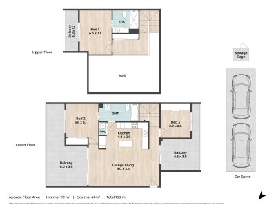 - 2 secure car spaces + lockable storage cage