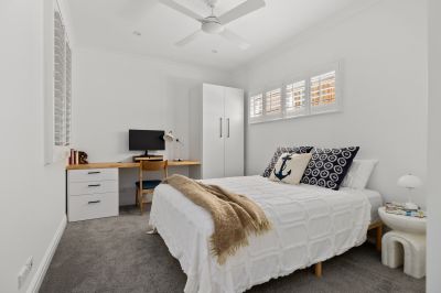 Period details like restored 1920s VJ board ceilings and walls, polished timber floors, and plantation shutters add timeless character, while modern comforts include fully zoned ducted air-conditioning, a split-system in the main, and a full-sized internal laundry. With two covered car spaces and thoughtful design throughout, this home is perfect for families seeking a secure, stylish, and functional space to grow.