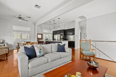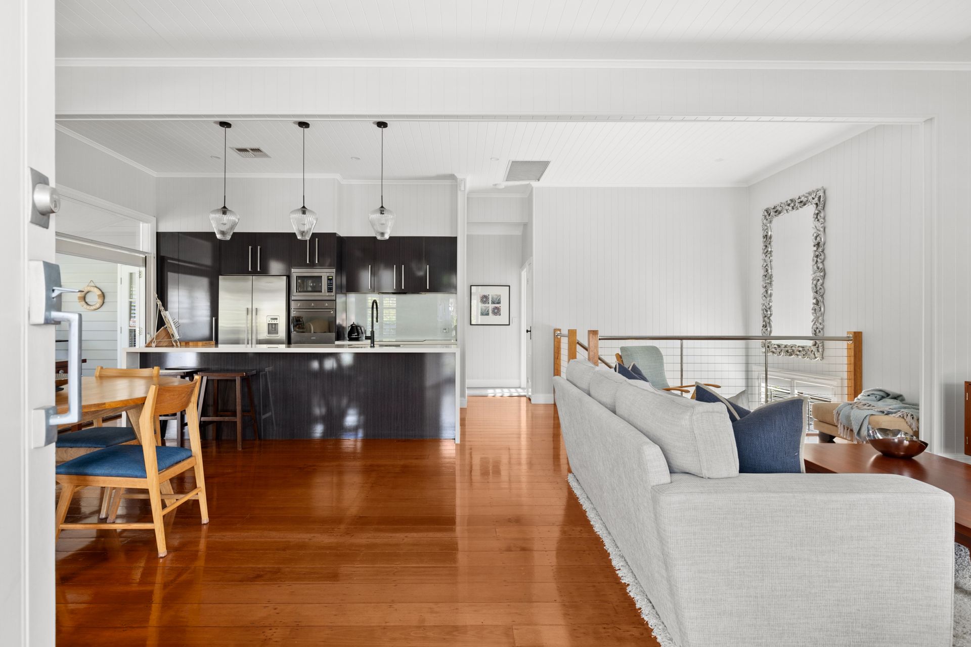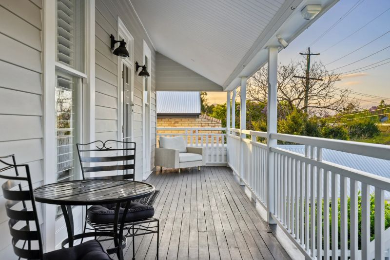 This beautiful, fully gated Queenslander offers a secure and welcoming home for families of all sizes. With an electronic front gate and low-maintenance landscaping featuring artificial turf and an automatic watering system, it combines safety, convenience, and charm. The elegant open-plan living and dining area flows seamlessly onto a wraparound balcony, providing a light-filled space for family gatherings and city glimpses.